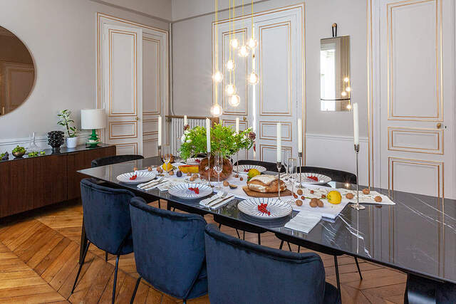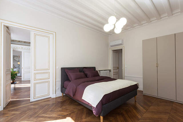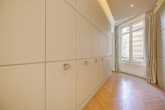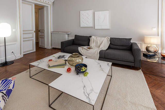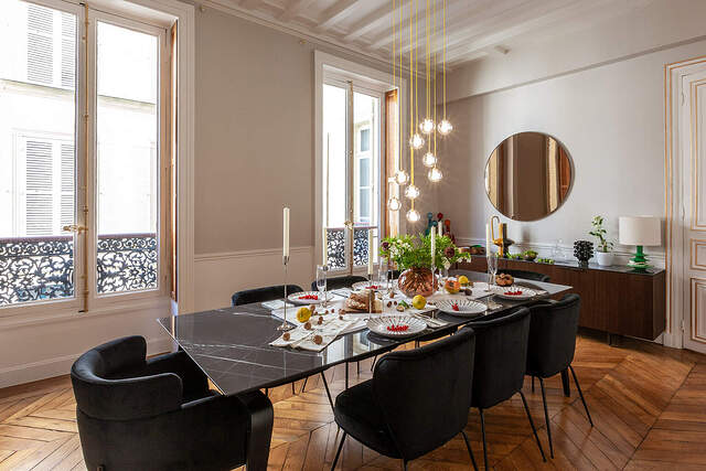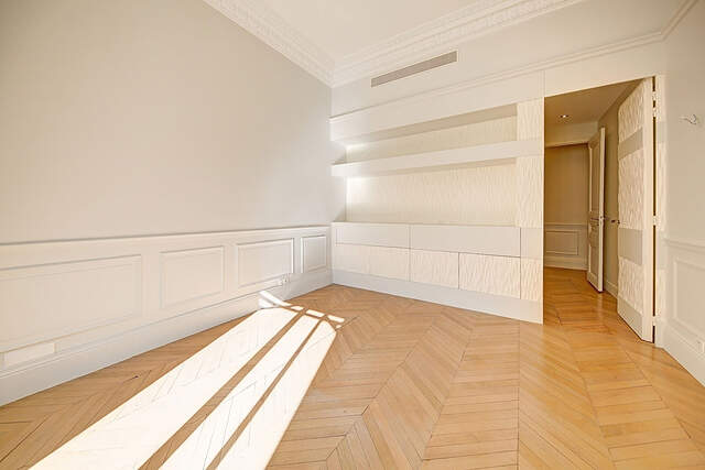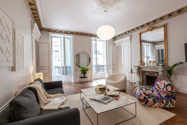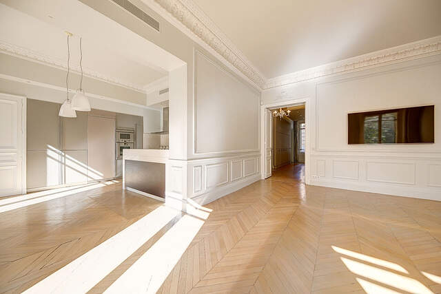 Эта стильная и роскошная четырехкомнатная квартира, выставленная на продажу, расположена на Rue de Castellane в престижном 8-м округе Парижа.