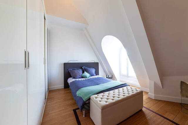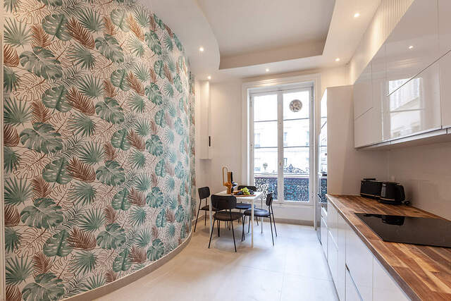 В квартире есть просторная гостиная, столовая зона, полностью оборудованная современная кухня, четыре уютные спальни, три стильные ванные комнаты и просторный холл. Это отличный выбор для семей или тех, кто ищет просторное жилье в Париже.