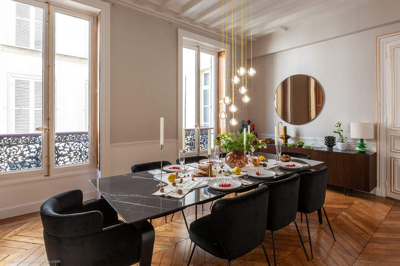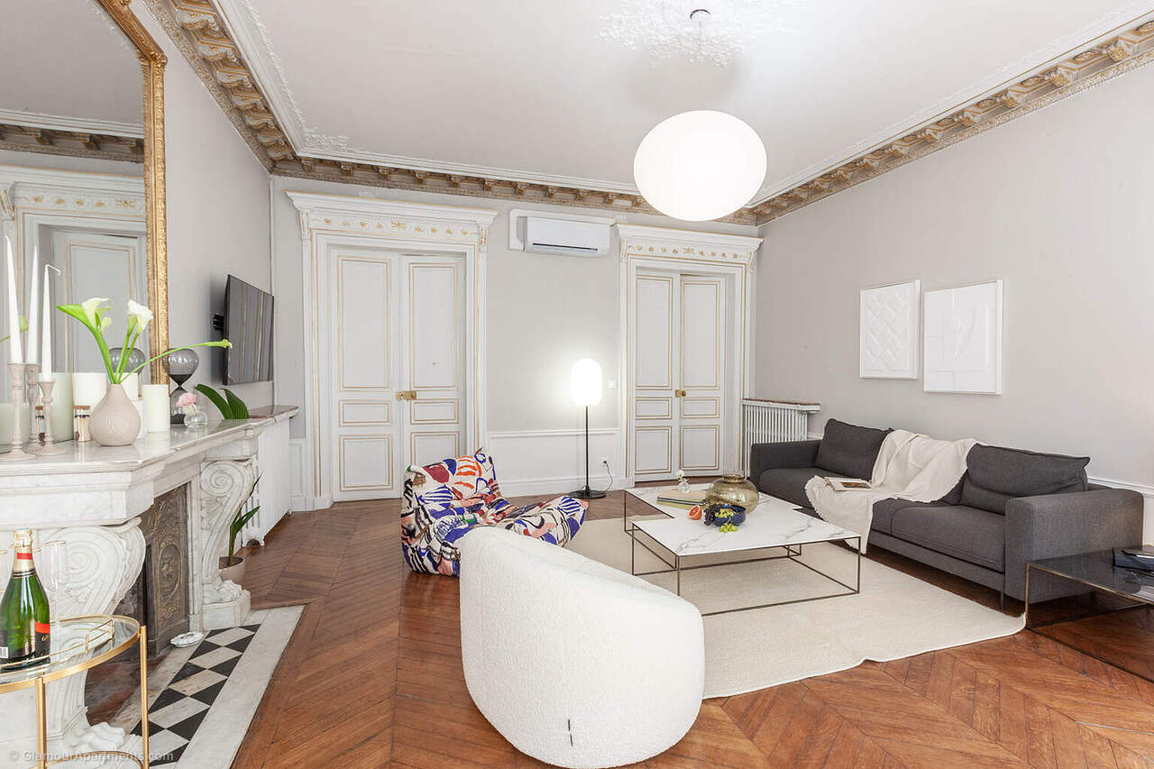 Эта эксклюзивный апартамент расположен в исключительном месте рядом с Оперой Гарнье, церковью Мадлен и вокзалом Сен-Лазар. Известные достопримечательности Парижа — Елисейские поля, Площадь Согласия, Лувр и другие — находятся совсем рядом.