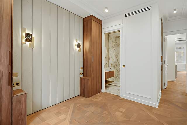 Оригинальный светлый апартамент на продажу площадью 150 м² занимает 5-й этаж престижного здания в самом центре «Золотого треугольника» Парижа, всего в нескольких шагах от Avenue Montaigne.